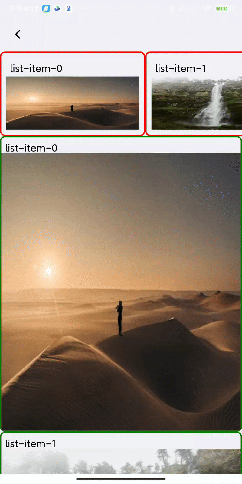 2. Full-span child nodes in multi-column layout: Set the full-span attribute for <list-item/> to make it occupy a full row or column in the layout.
